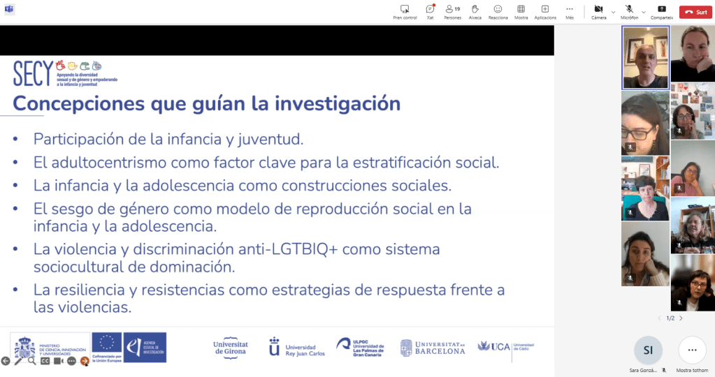 El pasado jueves 24 de abril se presentó el proyecto SECY a profesionales, organizaciones e instituciones vinculadas a la infancia y juventud LGTBIQ+ para poner en común su aproximación. La sesión iba dirigida a poder recibir valoraciones y comentarios desde su perspectiva y experiencia profesional, con el fin de mejorar y adaptar la metodología del proyecto.